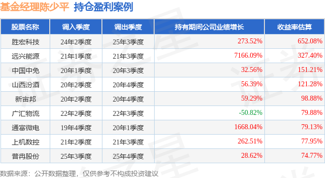 陈少平管理的广发改革混合基金在24年2季度买入胜宏科技,在持有1年又1个季度后在25年3季度卖出。持有期间的估算收益率为652.08%,持有期间胜宏科技在2024年到2025年的年报归属净利润增幅达273.52%。