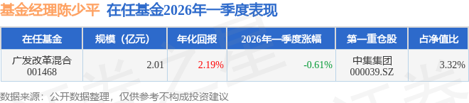 证券之星消息,截止2026年一季度末,基金经理陈少平管理的广发改革混合(001468)季度净值跌0.61%。