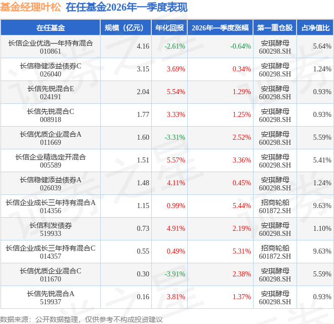 证券之星消息,截止2026年一季度末,基金经理叶松旗下共管理12只基金,本季度表现最佳的为长信企业成长三年持有混合A(014356),季度净值涨5.44%。
