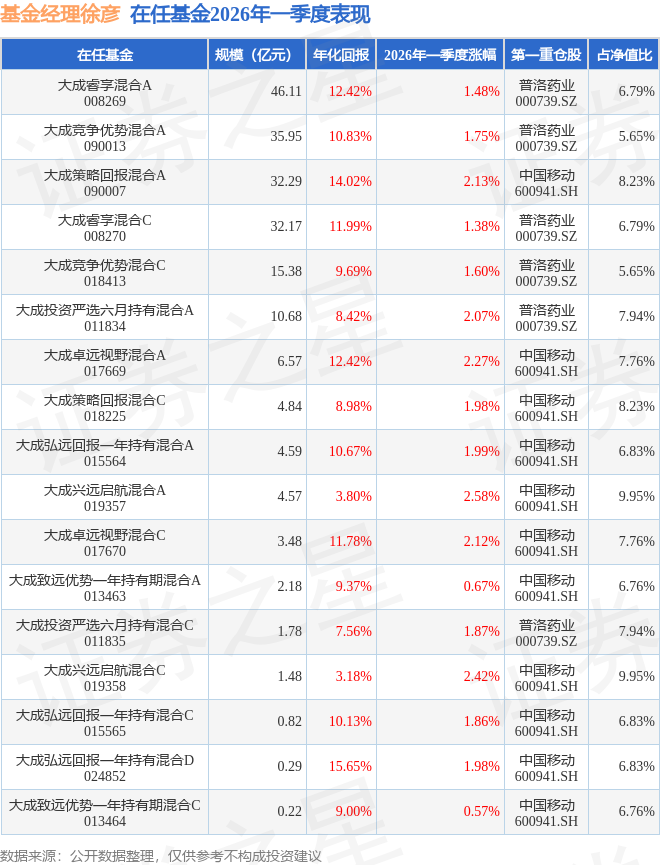 证券之星消息,截止2026年一季度末,基金经理徐彦旗下共管理17只基金,本季度表现最佳的为大成兴远启航混合A(019357),季度净值涨2.58%。