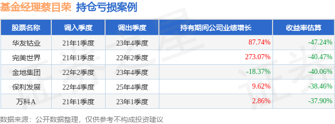 蔡目荣管理的华宝资源优选混合A基金在21年1季度买入华友钴业,在持有2年又3个季度后在23年4季度卖出。持有期间的估算收益率为-47.24%,持有期间华友钴业在2021年到2023年的年报营业总收入增幅达87.74%。