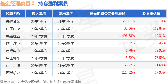 蔡目荣管理的华宝资源优选混合A基金在20年1季度买入赤峰黄金,在持有1年又0个季度后在21年1季度卖出。持有期间的估算收益率为128.1%,持有期间赤峰黄金在2020年到2021年的年报营业总收入降幅为17.01%。