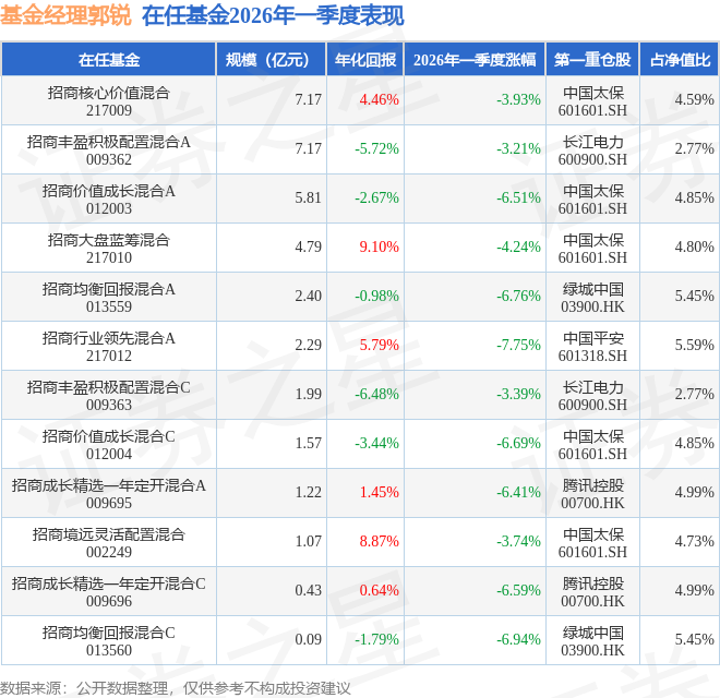 证券之星消息,截止2026年一季度末,基金经理郭锐旗下共管理12只基金,本季度表现最佳的为招商丰盈积极配置混合A(009362),季度净值跌3.21%。