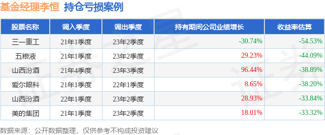 李恒管理的国泰金福三个月定开混合基金在21年1季度买入三一重工,在持有2年又1个季度后在23年2季度卖出。持有期间的估算收益率为-54.53%,持有期间三一重工在2021年到2023年的年报营业总收入降幅为30.74%。