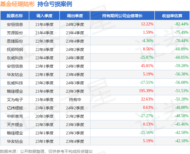 陆彬管理的汇丰晋信智造先锋股票A基金在21年4季度买入安恒信息,在持有2年又2个季度后在24年2季度卖出。持有期间的估算收益率为-82.44%,持有期间安恒信息在2021年到2024年的年报营业总收入增幅达12.22%。