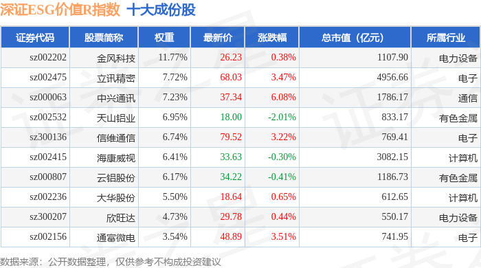 深证ESG价值R(470061)指数十大成份股详情如下: