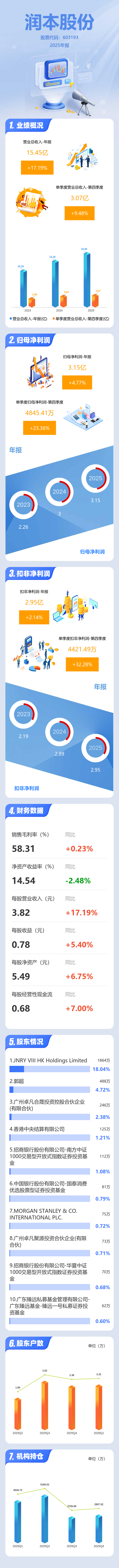 证券之星消息,润本股份2025年年报显示,当年度公司主营收入15.45亿元,同比上升17.19%;归母净利润3.15亿元,同比上升4.78%;扣非净利润2.95亿元,同比上升2.15%;其中2025年第四季度,公司单季度主营收入3.07亿元,同比上升9.48%;单季度归母净利润4845.41万元,同比上升23.36%;单季度扣非净利润4421.49万元,同比上升32.29%;负债率5.0%,投资收益1901.99万元,财务费用-1133.86万元,毛利率58.31%。