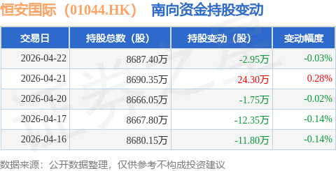 证券之星消息,4月22日南向资金减持2.95万股恒安国际(01044.HK)。近5个交易日中,获南向资金减持的有4天,累计净减持4.55万股。近20个交易日中,获南向资金增持的有5天,累计净增持17.2万股。截至目前,南向资金持有恒安国际(01044.HK)8687.4万股,占公司已发行普通股的7.47%。