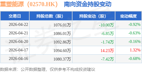 证券之星消息,4月22日南向资金减持10.0万股重塑能源(02570.HK)。近5个交易日中,获南向资金减持的有4天,累计净减持11.77万股。近20个交易日中,获南向资金减持的有13天,累计净减持54.08万股。截至目前,南向资金持有重塑能源(02570.HK)1076.01万股,占公司已发行普通股的17.3%。