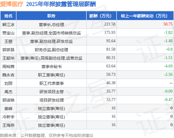 证券之星消息,爱博医疗发布2025年年报,数据显示:公司主营收入14.83亿元,同比增5.15%。归母净利润为2.68亿元,同比减30.96%。扣非净利润为2.55亿元,同比减34.57%。当年公司员工总数2331人,同比增1.61%。人均薪酬16.3万元(注:"人均薪酬"根据定期报告中"应付职工薪酬"附注的本期增加值 / 员工总数计算而来),同比增8.14%。人均创收63.61万元,同比增3.49%。人均创利10.32万元,同比减38.83%。其中管理层薪酬总额为933.33万元,同比上一年增2.43%,薪酬最高的为董事长,总经理解江冰,薪酬221.58万元。