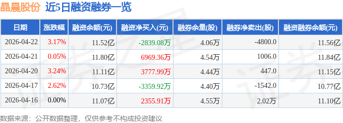 晶晨股份融资融券信息显示,融资方面,当日融资买入1.33亿元,融资偿还1.61亿元,融资净偿还2839.08万元。融券方面,融券卖出400.0股,融券偿还5200.0股,融券余量4.06万股,融券余额360.66万元。融资融券余额11.56亿元。