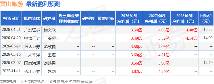 投资建议:预计黄山旅游2026-2028年归母净利润分别为3.36/4.02/4.67亿,同比14.74%/19.74%/16.17%,对应PE为26.5X/22.1X/19.0X,给与“买入”评级。