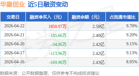 证券之星消息,4月22日,华星创业(300025)融资买入2353.57万元,融资偿还502.6万元,融资净买入1850.97万元,融资余额2.58亿元。