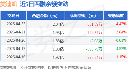 证券之星消息,4月22日,美迪凯(688079)融资买入3200.0万元,融资偿还2338.11万元,融资净买入861.89万元,融资余额2.04亿元。