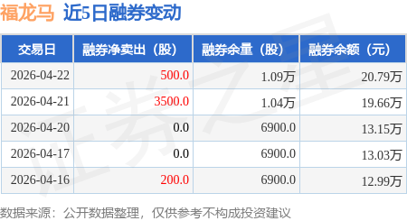 融券方面,当日融券卖出500.0股,融券偿还0.0股,融券净卖出500.0股,融券余量1.09万股,近20个交易日中有13个交易日出现融券净卖出。