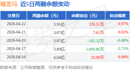 证券之星消息,4月22日,福龙马(603686)融资买入2251.42万元,融资偿还1876.04万元,融资净买入375.38万元,融资余额3.91亿元。