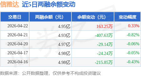 证券之星消息,4月22日,信雅达(600571)融资买入977.65万元,融资偿还814.86万元,融资净买入162.79万元,融资余额4.94亿元。