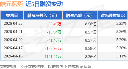 证券之星消息,4月22日,皓元医药(688131)融资买入2657.66万元,融资偿还2571.16万元,融资净买入86.49万元,融资余额8.58亿元,近20个交易日中有11个交易日出现融资净买入。