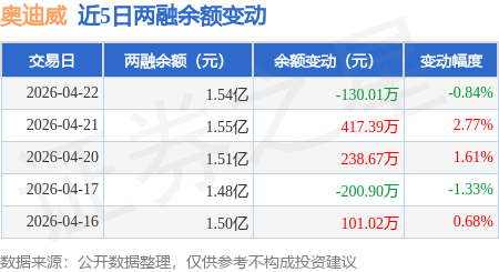 证券之星消息,4月22日,奥迪威(920491)融资买入501.78万元,融资偿还631.79万元,融资净卖出130.01万元,融资余额1.54亿元,近20个交易日中有14个交易日出现融资净买入。