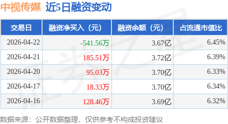 证券之星消息,4月22日,中视传媒(600088)融资买入572.75万元,融资偿还1114.3万元,融资净卖出541.56万元,融资余额3.67亿元。