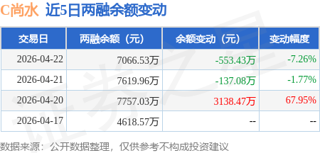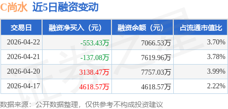 证券之星消息,4月22日,C尚水(301513)融资买入3563.06万元,融资偿还4116.49万元,融资净卖出553.43万元,融资余额7066.53万元。