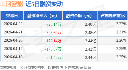 证券之星消息,4月22日,山河智能(002097)融资买入2117.74万元,融资偿还2842.88万元,融资净卖出725.14万元,融资余额2.4亿元。