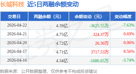 证券之星消息,4月22日,长城科技(603897)融资买入5838.58万元,融资偿还9463.95万元,融资净卖出3625.38万元,融资余额4.38亿元,近20个交易日中有14个交易日出现融资净买入。