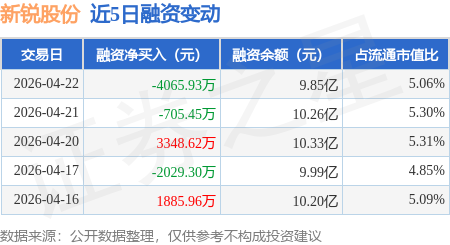 证券之星消息,4月22日,新锐股份(688257)融资买入8725.55万元,融资偿还1.28亿元,融资净卖出4065.93万元,融资余额9.85亿元,近20个交易日中有12个交易日出现融资净买入。