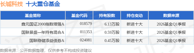 持有长城科技最多的基金为鑫元国证2000指数增强A,目前规模为1.99亿元,最新净值1.516(4月22日),较上一交易日上涨0.24%,近一年上涨45.41%。该基金现任基金经理为刘宇涛 肖涵。
