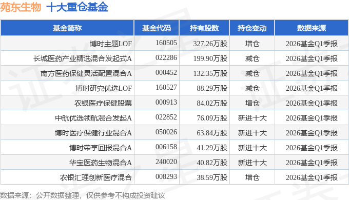 持有苑东生物最多的基金为博时主题LOF,目前规模为48.27亿元,最新净值1.331(4月22日),较上一交易日上涨0.45%,近一年上涨44.05%。该基金现任基金经理为石炯。