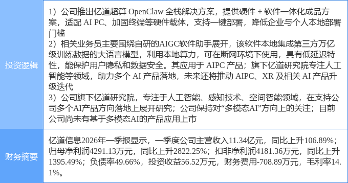 该股为OpenClaw概念,多模态,AIGC概念概念热股。
