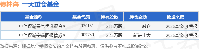 根据2026基金Q1季报公募基金重仓股数据,重仓该股的公募基金共2家,其中持有数量最多的公募基金为中信保诚基金的中信保诚景气优选混合A。中信保诚景气优选混合A目前规模为2.44亿元,最新净值2.0906(4月22日),较上一交易日下跌0.01%,近一年上涨41.49%。该公募基金现任基金经理为王颖。王颖在任的基金产品包括:中信保诚新锐混合A,管理时间为2020年1月8日至今,期间收益率为47.07%;中信保诚中证500指数增强A,管理时间为2024年6月21日至今,期间收益率为73.18%;中信保诚瑞丰6个月混合A,管理时间为2025年2月25日至今,期间收益率为3.38%;中信保诚多策略混合(LOF)A,管理时间为2025年8月20日至今,期间收益率为12.84%。