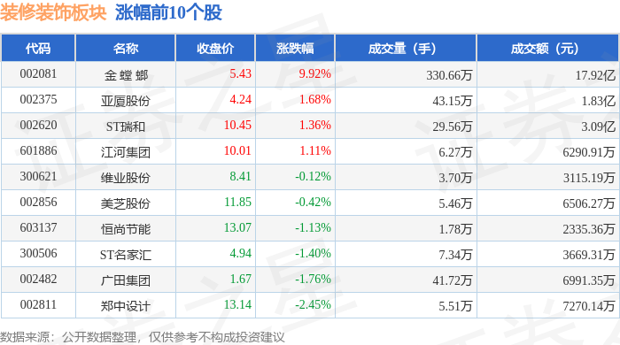 证券之星消息,4月23日装修装饰板块较上一交易日下跌0.88%,名雕股份领跌。当日上证指数报收于4093.25,下跌0.32%。深证成指报收于15043.45,下跌0.88%。装修装饰板块个股涨跌见下表: