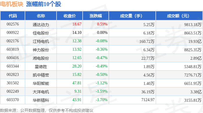 证券之星消息,4月23日电机板块较上一交易日下跌1.9%,晨光电机领跌。当日上证指数报收于4093.25,下跌0.32%。深证成指报收于15043.45,下跌0.88%。电机板块个股涨跌见下表: