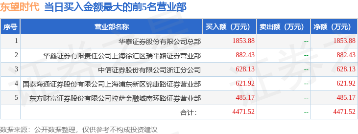 证券之星消息,沪深交易所2026年4月23日公布的交易公开信息显示,东望时代(600052)因有价格涨跌幅限制的日收盘价格涨幅偏离值达到7%的前五只证券,非ST、*ST和S证券连续三个交易日内收盘价格涨幅偏离值累计达到20%的证券登上龙虎榜。此次是近5个交易日内第2次上榜。