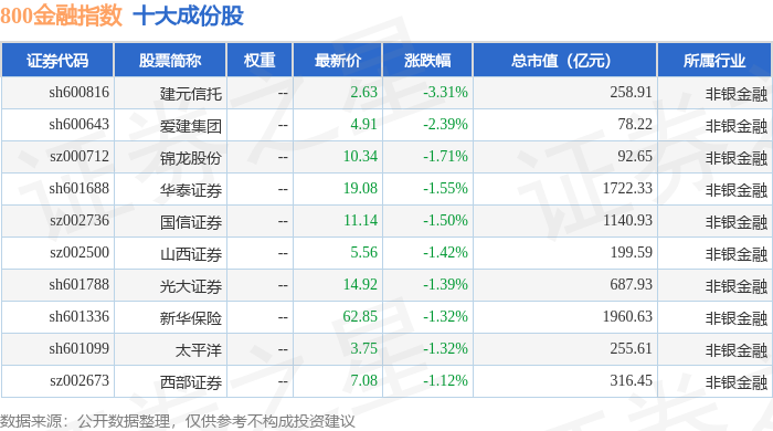 资金流向方面,800金融(000974)指数成份股当日主力资金净流出合计12.54亿元,游资资金净流入合计1.51亿元,散户资金净流入合计11.04亿元。成份股资金流向详情见下表: