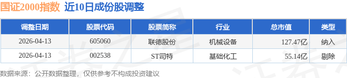 近10日内国证2000(399303)指数成份股做了调整,新纳入了1只股票,剔除了1只股票。
