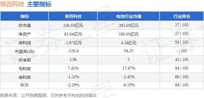 容百科技2025年年报显示,当年度公司主营收入122.67亿元,同比下降18.69%;归母净利润-1.87亿元,同比下降163.34%;扣非净利润-2.17亿元,同比下降188.96%;其中2025年第四季度,公司单季度主营收入32.82亿元,同比下降12.82%;单季度归母净利润1619.84万元,同比下降90.98%;单季度扣非净利润368.09万元,同比下降97.63%;负债率64.45%,投资收益6690.47万元,财务费用1.3亿元,毛利率7.41%。容百科技(688005)主营业务:三元材料、磷酸铁锂材料、磷酸锰铁锂材料、钠电材料及多元前驱体的研发、生产和销售。