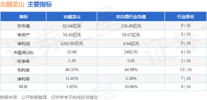 古越龙山2026年一季报显示,一季度公司主营收入5.41亿元,同比上升0.22%;归母净利润6202.99万元,同比上升5.1%;扣非净利润5902.9万元,同比上升3.47%;负债率11.31%,投资收益-46.61万元,财务费用-229.84万元,毛利率40.31%。古越龙山(600059)主营业务:黄酒的制造、销售及研发,生产黄酒原酒、黄酒瓶装酒及少量果酒、白酒等。