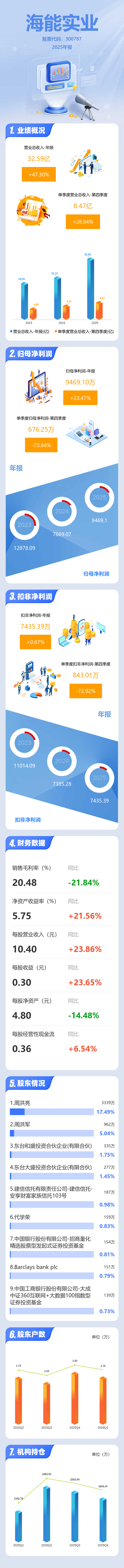 证券之星消息,海能实业2025年年报显示,当年度公司主营收入32.59亿元,同比上升47.3%;归母净利润9469.1万元,同比上升23.47%;扣非净利润7435.39万元,同比上升0.68%;其中2025年第四季度,公司单季度主营收入8.47亿元,同比上升28.85%;单季度归母净利润676.25万元,同比下降73.64%;单季度扣非净利润843.01万元,同比下降72.93%;负债率60.43%,投资收益207.01万元,财务费用4666.27万元,毛利率20.48%。