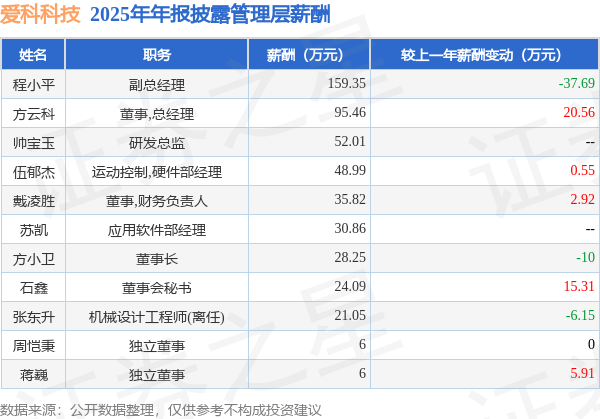 证券之星消息,爱科科技发布2025年年报,数据显示:公司主营收入4.49亿元,同比减0.65%。归母净利润为5069.48万元,同比减24.35%。扣非净利润为4835.19万元,同比减25.32%。当年公司员工总数500人,同比增3.52%。人均薪酬21.99万元(注:"人均薪酬"根据定期报告中"应付职工薪酬"附注的本期增加值 / 员工总数计算而来),同比增16.22%。人均创收89.72万元,同比减4.02%。人均创利10.14万元,同比减26.92%。其中管理层薪酬总额为507.88万元,同比上一年减4.08%,薪酬最高的为副总经理程小平,薪酬159.35万元。