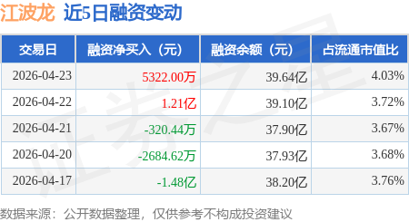 证券之星消息,4月23日,江波龙(301308)融资买入7.97亿元,融资偿还7.44亿元,融资净买入5322.0万元,融资余额39.64亿元。