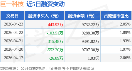 证券之星消息,4月23日,巨一科技(688162)融资买入1417.39万元,融资偿还973.47万元,融资净买入443.92万元,融资余额9732.22万元。