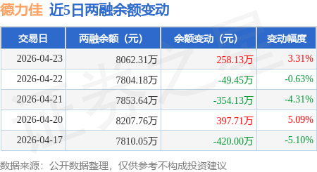 证券之星消息,4月23日,德力佳(603092)融资买入2746.05万元,融资偿还2487.92万元,融资净买入258.13万元,融资余额8062.31万元。