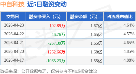 证券之星消息,4月23日,中自科技(688737)融资买入1174.35万元,融资偿还981.46万元,融资净买入192.89万元,融资余额1.67亿元。