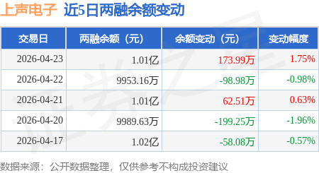 证券之星消息,4月23日,上声电子(688533)融资买入433.14万元,融资偿还262.15万元,融资净买入170.99万元,融资余额1.01亿元。