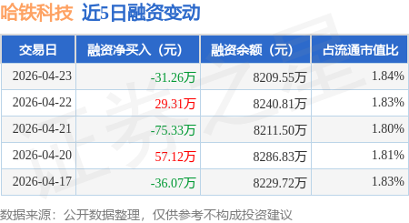 证券之星消息,4月23日,哈铁科技(688459)融资买入210.8万元,融资偿还242.07万元,融资净卖出31.26万元,融资余额8209.55万元。