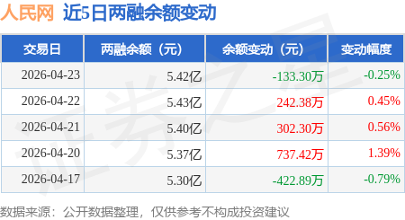 证券之星消息,4月23日,人民网(603000)融资买入2345.5万元,融资偿还2545.6万元,融资净卖出200.1万元,融资余额5.35亿元。