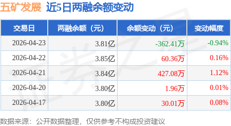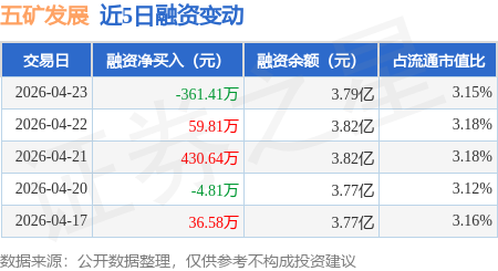 证券之星消息,4月23日,五矿发展(600058)融资买入803.92万元,融资偿还1165.32万元,融资净卖出361.41万元,融资余额3.79亿元。