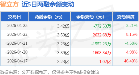 证券之星消息,4月23日,智立方(301312)融资买入9041.51万元,融资偿还9808.92万元,融资净卖出767.4万元,融资余额3.41亿元。